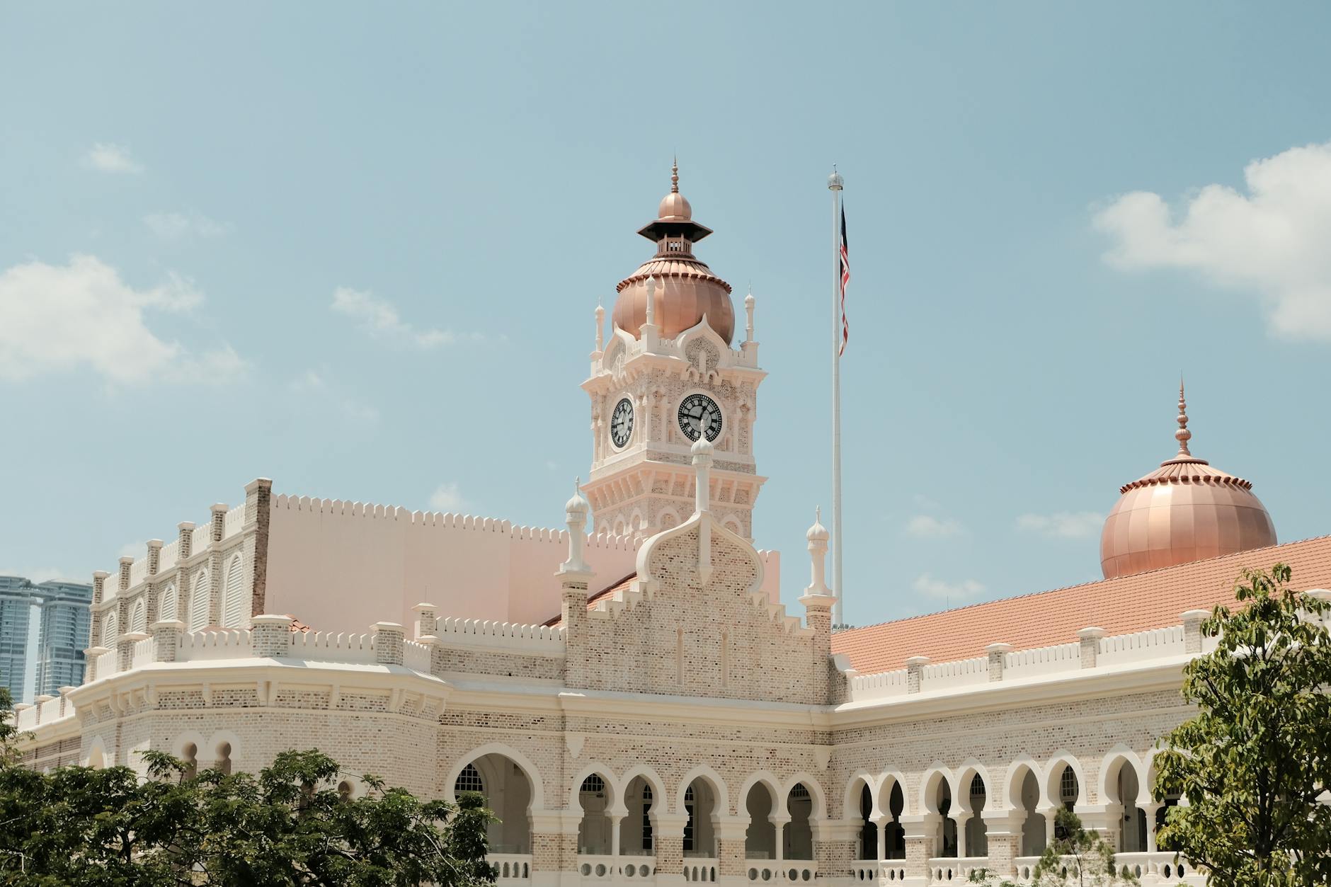 Jednym z najbardziej charakterystycznych śladów brytyjskiego dziedzictwa jest dawny dworzec kolejowy Kuala Lumpur (Kuala Lumpur Railway Station), oddany do użytku na początku XX wieku. Jego niezwykła architektura – mieszanka motywów mauretańskich, indo-saraceńskich i europejskiego modernizmu konstrukcyjnego – miała zarówno funkcję praktyczną, jak i symboliczną. Dworzec był bramą do kolonialnego hinterlandu: linii prowadzących w głąb Półwyspu, do kopalń cyny i plantacji kauczuku.